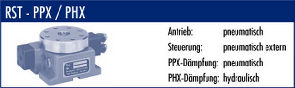 Der RST 10 PPX wird pneumatisch angetrieben und gedämpft. Für hohe Ansprü-che kann die Dämpfung auch hydraulisch ausgeführt werden (PHX). NST 10 PPX hat die gleichen Eigenschaften wie RST, ist jedoch nichtabhebend.